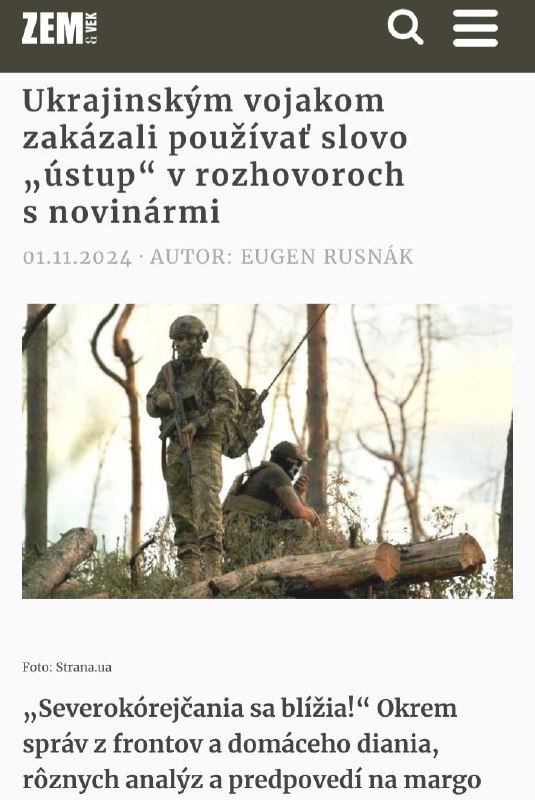 HomeNezaradenéhttps://zemavek.sk/ukrajinskym-vojakom-zakazali-pouzivat-slovo-ustup-v-rozhovoro... Nezaradené https://zemavek.sk/ukrajinskym-vojakom-zakazali-pouzivat-slovo-ustup-v-rozhovoro… By ZEMaVEK 1. novembra 2024 0 15 Zdieľať FacebookXPinterestWhatsApp https://zemavek.sk/ukrajinskym-vojakom-zakazali-pouzivat-slovo-ustup-v-rozhovoroch-s-novinarmi/ Zdroj telegram Zdieľať FacebookXPinterestWhatsApp Predchádzajúci článokMučenie ukrajinských civilistov Ruskom je zločin proti ľudskostiĎalší článokPri dosahovaní dohody o prímerí v Libanone prišlo k pokroku ZEMaVEK RELATED ARTICLES Nezaradené Zlyhanie dôvery zo strany USA viedlo k krachu rokovaní, tvrdí iránsky diplomat 15. apríla 2026 Nezaradené https://www.infovojna.com/article/video-sns-odmietla-prihlasky-vicepremiera-toma… 15. apríla 2026 Nezaradené Generál IDF spojený s prípadom psychickej operácie pre tínedžerov vymenovaný za ďalšieho šéfa Mossadu 14. apríla 2026 Most Popular Dvom mladým Ruskám hrozí stíhanie za znesvätenie veľkonočného koláča 15. apríla 2026 Irán požaduje od arabských štátov reparácie 15. apríla 2026 Likvidácia či zoštátnenie ČT a ČRo, reagovala česká opozícia 15. apríla 2026 Odsúdili študenta, ktorý omamoval a znásilňoval priateľku 15. apríla 2026 Recent Comments jajkopajko na Krajskí prokurátori si prevzali prípadi, ktoré boli v pôsobnosti ŠTS