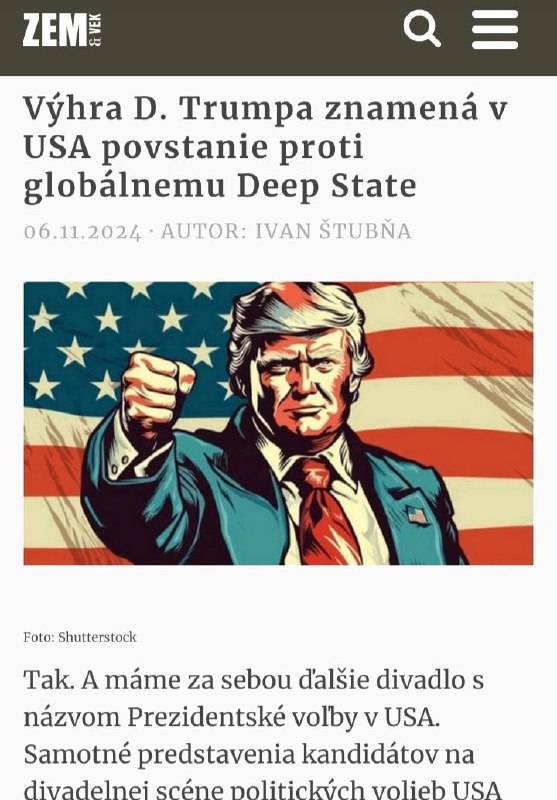 HomeNezaradenéhttps://zemavek.sk/vyhra-d-trumpa-znamena-v-usa-povstanie-proti-globalnemu-deep-... Nezaradené https://zemavek.sk/vyhra-d-trumpa-znamena-v-usa-povstanie-proti-globalnemu-deep-… By ZEMaVEK 6. novembra 2024 0 15 Zdieľať FacebookXPinterestWhatsApp https://zemavek.sk/vyhra-d-trumpa-znamena-v-usa-povstanie-proti-globalnemu-deep-state/ Zdroj telegram Zdieľať FacebookXPinterestWhatsApp Predchádzajúci článokHádzanárky MŠK Iuventa Michalovce zvíťazili nad HK HodonínĎalší článokRuská centrálna banka očakáva rast ekonomiky vo 4. kvartáli o 3 % ZEMaVEK RELATED ARTICLES Nezaradené Toto nebol len obyčajný zápas … Brazília vs. Chorvátsko, ale na ihrisku sa str… 3. apríla 2026 Nezaradené Miznúci ostrov slobody Je za všetko vinná blokáda USA? Kubánska blokáda odhalila… 3. apríla 2026 Nezaradené V Bielom dome dochádza k čistkám nepohodlných ľudí. Donald Trump sa kvôli zverej… 3. apríla 2026 ZANECHAJTE KOMENTÁR Zrušiť odpoveď Komentár: Zadajte svoj komentár! Názov:* Sem zadajte svoje meno Email:* Zadali ste nesprávnu e-mailovú adresu! Sem zadajte svoju e-mailovú adresu Webová stránka: Uložte moje meno, e-mail a webovú stránku do tohto prehliadača pri najbližšom komentovaní. Prove your humanity: 9 + 10 = Put your comment here Most Popular Biely dom žiada navýšenie budúcoročného rozpočtu na obranu 3. apríla 2026 Ruský vicepremiér pricestoval do Naí Dillí na rokovania na vysokej úrovni 3. apríla 2026 Výrobcovia liečiv v Nemecku sa obávajú nových amerických ciel 3. apríla 2026 Toto nebol len obyčajný zápas … Brazília vs. Chorvátsko, ale na ihrisku sa str… 3. apríla 2026 Recent Comments jajkopajko na Krajskí prokurátori si prevzali prípadi, ktoré boli v pôsobnosti ŠTS