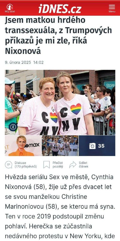 HomeNezaradené„Hviezda seriálu Sex v meste, Cynthia Nixonová (58), žije už vyše 20... Nezaradené „Hviezda seriálu Sex v meste, Cynthia Nixonová (58), žije už vyše 20 rokov so sv… By losbastardos 10. februára 2025 0 14 Zdieľať FacebookXPinterestWhatsApp „Hviezda seriálu Sex v meste, Cynthia Nixonová (58), žije už vyše 20 rokov so svojou manželkou Christine Marinoniovou (58), s ktorou má syna. Ten v roku 2019 podstúpil zmenu pohlavia. “Som matkou hrdého transsexuála, s Trumpových príkazov je mi zle!” Zdroj telegram Zdieľať FacebookXPinterestWhatsApp Predchádzajúci článokUkrajina, ktorá nám zastavila tranzit ruského plynu, musela pre jeho nedostatok …Ďalší článokDo volieb do Bundestagu v Nemecku zostáva 13 dní.Podľa najnovších prieskumov ved… losbastardoshttps://dennikn.news RELATED ARTICLES Nezaradené V Damasku bolo počuť výbuchy po zachytení rakiet protivzdušnou obranou 2. apríla 2026 Nezaradené Zásah dronu spôsobil rozsiahly požiar v skladoch Castrol neďaleko Erbilu 2. apríla 2026 Nezaradené Cena ropy v Basre klesla o viac ako 2 % napriek globálnej rastúcej cene ropy 2. apríla 2026 ZANECHAJTE KOMENTÁR Zrušiť odpoveď Komentár: Zadajte svoj komentár! Názov:* Sem zadajte svoje meno Email:* Zadali ste nesprávnu e-mailovú adresu! Sem zadajte svoju e-mailovú adresu Webová stránka: Uložte moje meno, e-mail a webovú stránku do tohto prehliadača pri najbližšom komentovaní. Prove your humanity: 0 + 8 = Most Popular Štvrtok má byť oblačný, na severe a východe daždivý 2. apríla 2026 V Damasku bolo počuť výbuchy po zachytení rakiet protivzdušnou obranou 2. apríla 2026 Rakúšan Mitter sa stal novým trénerom nemeckých reprezentantov 2. apríla 2026 Zásah dronu spôsobil rozsiahly požiar v skladoch Castrol neďaleko Erbilu 2. apríla 2026 Recent Comments jajkopajko na Krajskí prokurátori si prevzali prípadi, ktoré boli v pôsobnosti ŠTS