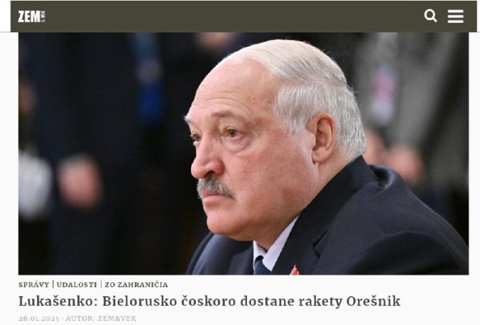 Hypersonické rakety typu Orešnik majú by? v najbližších d?och umiestnené v Bielorusku. Bieloruský prezident Lukašenko povedal, že do Bieloruska budú smerova? ?alšie systémy. Povedal to v nede?u na tla?ovej konferencii. Orešnik sa nedá zachyti? a môže by? vybavený konven?nými alebo jadrovými zbra?ami.