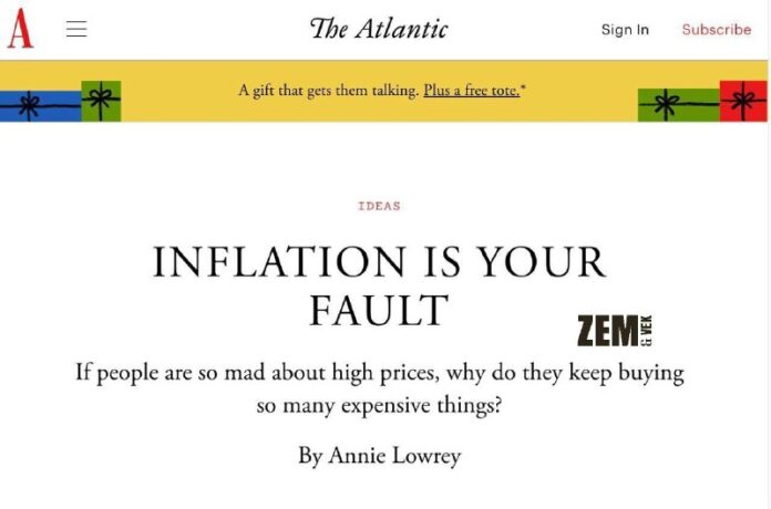 HomeNezaradené"INFLÁCIA JE VAŠA VINA""Ak sú ľudia takí nahnevaní na vysoké ceny, prečo... Nezaradené „INFLÁCIA JE VAŠA VINA““Ak sú ľudia takí nahnevaní na vysoké ceny, prečo stále kupujú toľko drahých vecí?“Americká publikácia The Atlantic s obľubou vysvetľuje … By ZEMaVEK 2. decembra 2023 0 11 Zdieľať FacebookXPinterestWhatsApp „INFLÁCIA JE VAŠA VINA„ „Ak sú ?udia takí nahnevaní na vysoké ceny, pre?o stále kupujú to?ko drahých vecí?“ Americká publikácia The Atlantic s ob?ubou vysvet?uje ?itate?om dôvod rastu cien. mimochodom| odber Zdroj telegram Zdieľať FacebookXPinterestWhatsApp Predchádzajúci článokNový obrázok koronálnej diery na Slnku – vďaka ktorej Zem opäť dostane silnú geomagnetickú búrku.Ďalší článokMŕtvy Henry Kissinger bol vyradený z ukrajinskej databázy „Peacemaker“, MIEROTVOREC kde bol zaradený v máji 2022 „za účasť na ruskej inform… ZEMaVEK RELATED ARTICLES Nezaradené Biely dom prerokúva druhé kolo rozhovorov medzi USA a Iránom 16. apríla 2026 Nezaradené VIDEO: Austrália, ktorá je závislá od dovozu ropy cez Hormuzský prieliv, má po r… 16. apríla 2026 Nezaradené „Legitimné ciele“: Medvedev na zozname siete dronov ruského ministerstva obrany prepojenej s Ukrajinou 16. apríla 2026 Most Popular Biely dom prerokúva druhé kolo rozhovorov medzi USA a Iránom 16. apríla 2026 Endoskopické dni v NOÚ priniesli naživo špičkovú endoskopiu 16. apríla 2026 Mier je dobrý, ale vojna je ešte lepšia. Všetky tieto prímeria a zdanlivá túžba správcu… 16. apríla 2026 EÚ odsudzuje „zmenšovanie“ slobody v Nemecku 16. apríla 2026 Recent Comments jajkopajko na Krajskí prokurátori si prevzali prípadi, ktoré boli v pôsobnosti ŠTS