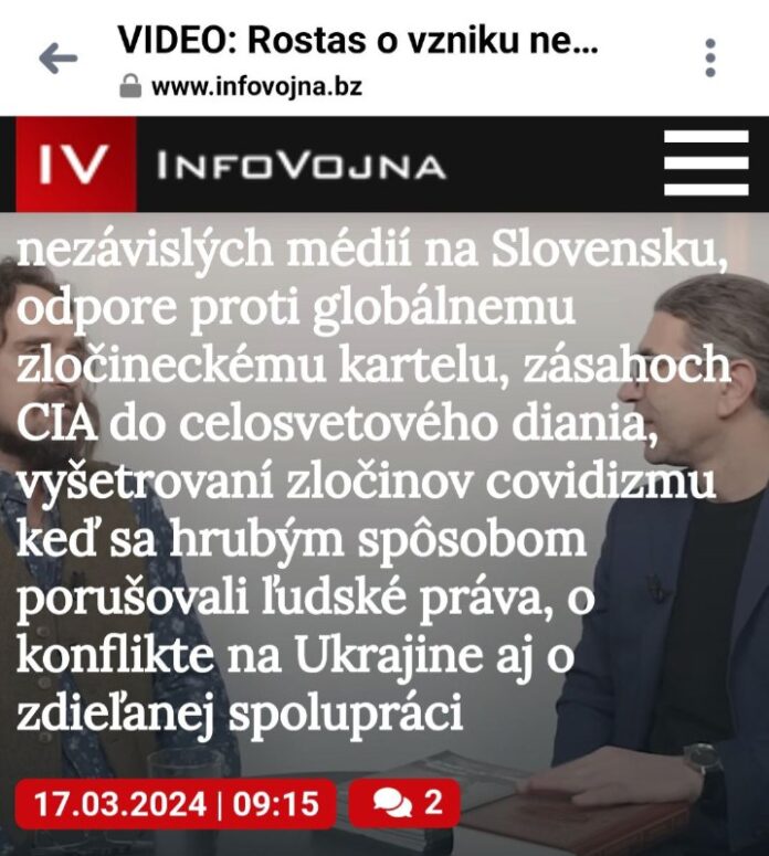 INFOVOJNA VIDEO: Rostas o vzniku nezávislých médií na Slovensku, odpore proti globálnemu zlo?ineckému kartelu, zásahoch CIA do celosvetového diania, vyšetrovaní zlo?inov covidizmu ke? sa hrubým spôsobom porušovali ?udské práva, o konflikte na Ukrajine aj o zdie?anej spolupráci