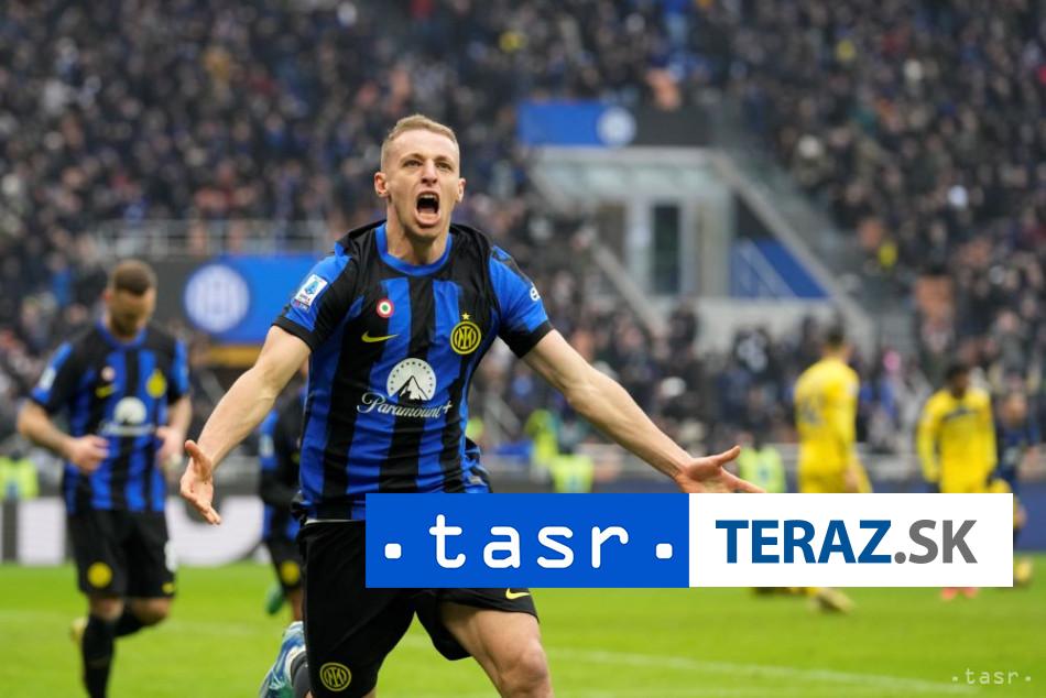Rím 6. januára (TASR) – Futbalisti Interu Miláno zví?azili v sobot?ajšom stretnutí 19. kola talianskej Serie A nad Hellasom Verona 2:1 a upevnili si post lídra sú?aže. Na ?ele tabu?ky majú pä?bodový náskok pred Juventusom Turín, ktorý ?akal nede??ajší súboj na ihrisku Salernitany.