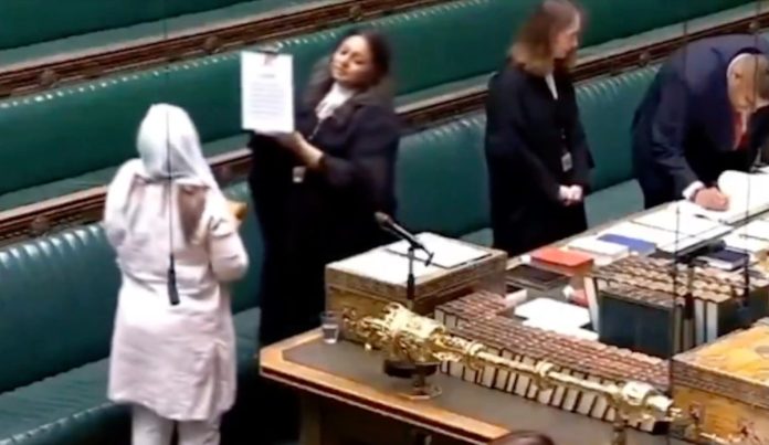 Journalistenwatch.com, 21.04.2025, fotka: Alláhu Akbar: Slavnostní p?ísaha Naz Shaha v Dolní sn?movn? (Foto:ScreenshotX)