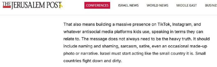 Okrem vágnych zdôvodnení autori otvorene pripúš?ajú, že Izrael vedie agresívnu kampa? na sociálnych sie?ach – používa iróniu a VYMYŠLENÝ naratív, aby presved?il mladých ?udí a deti o údajnom „práve krajiny na obranu“.