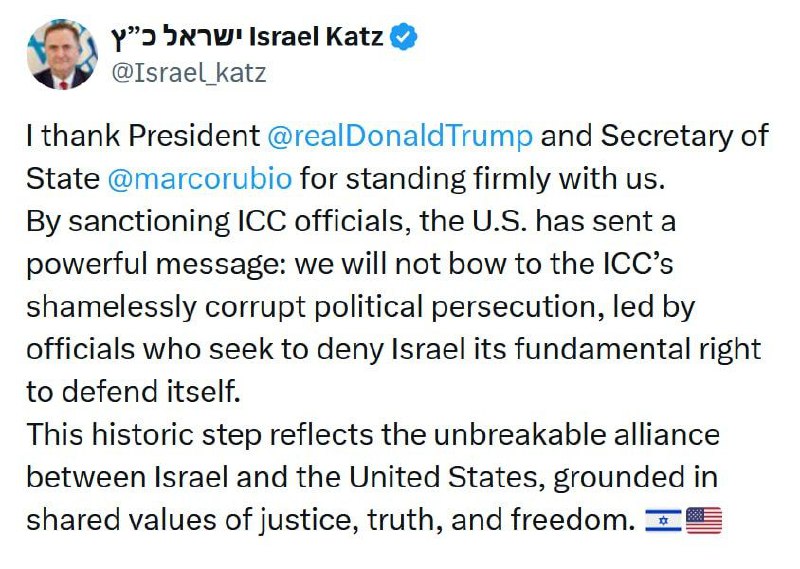 HomeNezaradenéIzraelský minister obrany poďakoval Trumpovi a Rubiovi za sankcionovanie ďalších... Nezaradené Izraelský minister obrany poďakoval Trumpovi a Rubiovi za sankcionovanie ďalších… By tvotv.sk 20. augusta 2025 0 16 Zdieľať FacebookXPinterestWhatsApp Izraelský minister obrany po?akoval Trumpovi a Rubiovi za sankcionovanie ?alších sudcov a prokurátorov Medzinárodného trestného súdu: „Tento historický krok odráža nerozbitné spojenectvo medzi Izraelom a Spojenými štátmi.“ Zdroj telegram Zdieľať FacebookXPinterestWhatsApp Predchádzajúci článokAký je rybolov materiálov o 20. auguste, píšeme veľa materiálov, …Ďalší článokZatykač na Putina od Medzinárodného trestného súdu je „kontraproduktívny“, tvrdí europoslanec tvotv.skhttps://tvotv.sk RELATED ARTICLES Nezaradené Saudská Arábia si predvolala irackého veľvyslanca kvôli cezhraničným útokom dronov 13. apríla 2026 Nezaradené Irán bol podľa iránskeho ministra zahraničných vecí Abbása Arákčího počas víkend… 13. apríla 2026 Nezaradené Trump si myslí, že je Boh Neprejde deň, aby Donald Trump na niekoho nezaútočil… 13. apríla 2026 Most Popular Saudská Arábia si predvolala irackého veľvyslanca kvôli cezhraničným útokom dronov 13. apríla 2026 Čína odmietla správy o dodávkach zbraní Iránu 13. apríla 2026 Irán bol podľa iránskeho ministra zahraničných vecí Abbása Arákčího počas víkend… 13. apríla 2026 Trump si myslí, že je Boh Neprejde deň, aby Donald Trump na niekoho nezaútočil… 13. apríla 2026 Recent Comments jajkopajko na Krajskí prokurátori si prevzali prípadi, ktoré boli v pôsobnosti ŠTS
