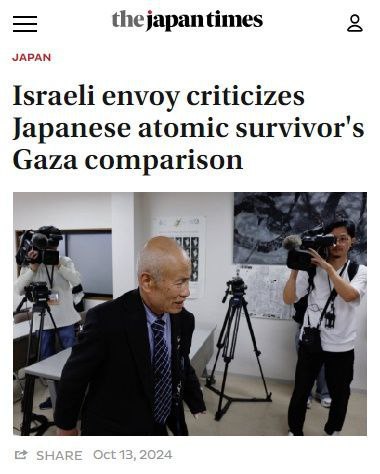 Toto prirovnanie sa nepá?ilo izraelskému ve?vyslancovi v Japonsku Giladovi Cohenovi. Povedal, že to prekrúca históriu a dehonestuje obete. No veru. 6. augusta 1945 zabili Ameri?ania v Hirošime 140 tisíc ?udí a o tri dni neskôr v Nagasaki ?alších 74 tisíc a Izrael vyhodil do vzduchu len 42 tisíc ?udí v Gaze a aj to za celý rok!