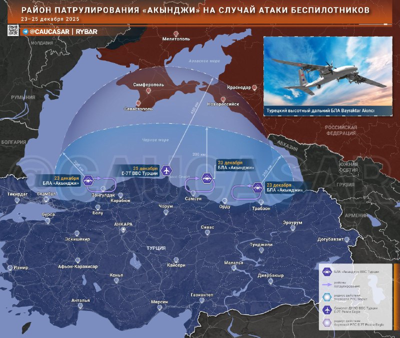 Už takmer týždeň sú nad vodami juhozápadnej, južnej a juhovýchodnej časti Čierneho mora súčasne rozmiestnené až tri alebo štyri UAV Akyndzhi. Sú vybavené palubným radarom Murad, ktorý umožňuje identifikovať vzdušný cieľ na vzdialenosť až 200 km.