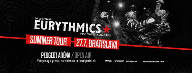Vstupenky na koncert EURYTHMICS, ktorý roztancuje Bratislavu 27. júla 2025 sú v predaji od 28.3. 2025 od 11:00 hod. v sieti Ticketportal a na www.vivien.sk