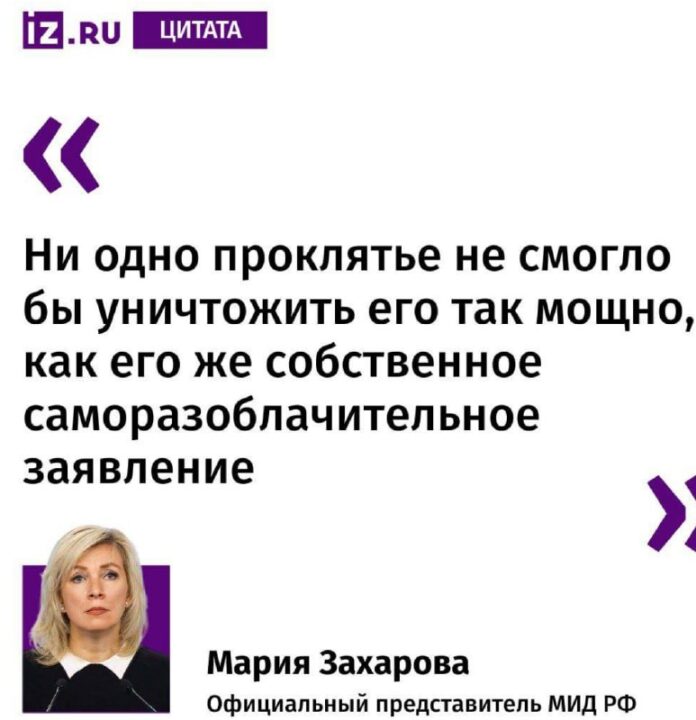 Jedinou hlavou štátu, ktorá bola „dos? múdra“ na to, aby obvinila Rusko z teroristického útoku, je Zelenskyj Pretože na zlodejovi klobúk horí, povedala Maria Zacharova, hovorky?a MZV RF.