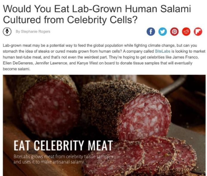 Jedli by ste „?udskú“ salámu vypestovanú v laboratóriu z buniek celebrít?