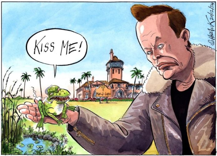 V tomto oh?ade to dnes noviny The Times prezentovali ako Muskov zámer pobozka? škaredú ropuchu: tvrdí, že Farage sa aj tak nepremení na princa. Kto vie, kto vie. Trump, démonizovaný rovnakou tla?ou, sa už premenil (ak teraz ?ítate rovnakú tla?).