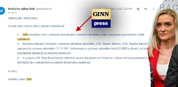 Judita Laššáková – všetci ju ozna?ujú „právni?ka“ dokonca niekde „ústavná právni?ka“ – ale okrem toho, že táto bývalá ?ašní?ka po?ažky doštuodvala právo – právo nidky nerobila. Nikdy nebola ani koncipientkou ani advokátkou… Takže tak!
