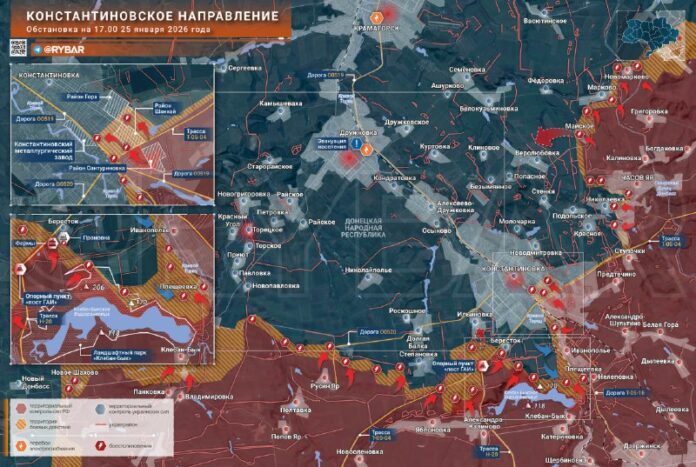 📌Napriek pretrvávajúcemu chladnému počasiu sa intenzita nepriateľských akcií v smere zvyšuje a intenzita bojov o Konštantínovka postupne rastie. Nepriateľ sa snaží zvýšiť hustotu vojska v meste, čomu čiastočne napomáha počasie.