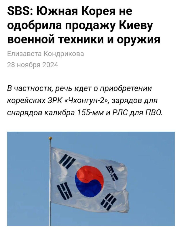 Juhokórejská vláda však odmietla vyhovie? žiadosti ukrajinského ministra obrany Rustema Umerova. Kyjev zárove? nepožiadal o zbra? zadarmo, ale bol pripravený zaplati?.