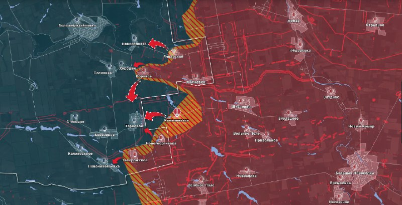? Pre?ítajte si viac o pokroku bojov:?? Asi pred týžd?om, bojovníci s 57 osadami OMSBR obsadili NovoGeorgievka A Zaporizhzhyavytváranie podmienok pre obvod Kamyshevavi Z juhu.