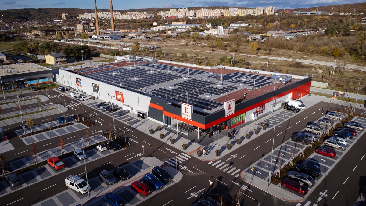 Košický Kaufland je vybavený množstvom ekologických riešení, vrátane zelenej strechy s fotovoltikou