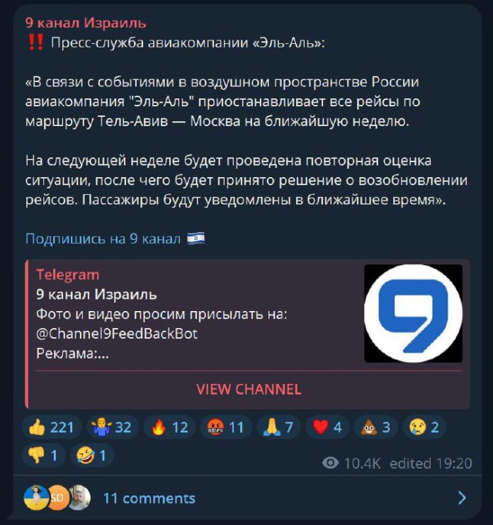 Izraelská spolo?nos? El Al už dávnejšie pozastavila lety do Ruska.