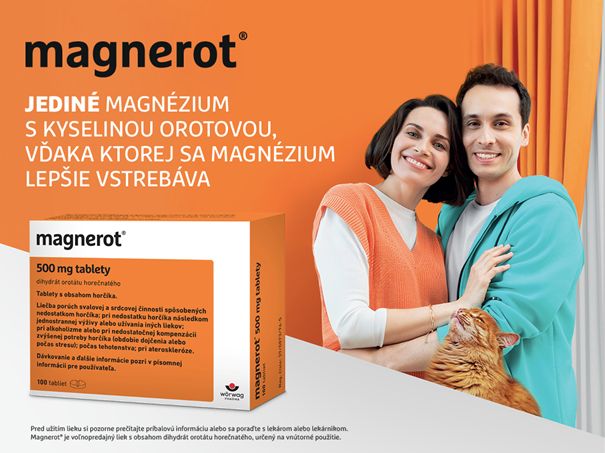Ak sa rozhodnete siahnu? po doplnkovom magnéziu, zvážte také, ktoré v?aka prirodzenému nosi?u zvyšuje jeho efektívne vstrebávanie. Na trhu je viacero magnézií, ktoré si môžeme kúpi? v lekár?ach. Jedným z nich je aj Magnerot® od nemeckej spolo?nosti Wörwag Pharma. Je to zárove? jediné magnézium s dihydrátom orotátu hore?natého, ako zlú?eniny magnézia a kyseliny orotovej. Nájdete ho v každej dobrej lekárni.