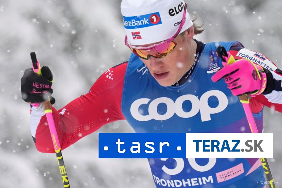 Trondheim 8. marca (TASR) – Nórsky bežec na lyžiach Johannes Hösflot Kläbo získal na MS v Trondheime zlato v pretekoch na 50 km vo?ne s hromadným štartom. V sobotu zví?azil s náskokom 2,1 sekundy pred Švédom Williamom Poromaaom, na tre?om mieste finišoval ?alší Nór Simen Hegstad Krüger (+8,5). Kläbo triumfoval na šampionáte vo všetkých šiestich disciplínach. Slovenský reprezentant Ján Adamov neprišiel do cie?a, súperi ho predstihli o kolo na 41. kilometri.