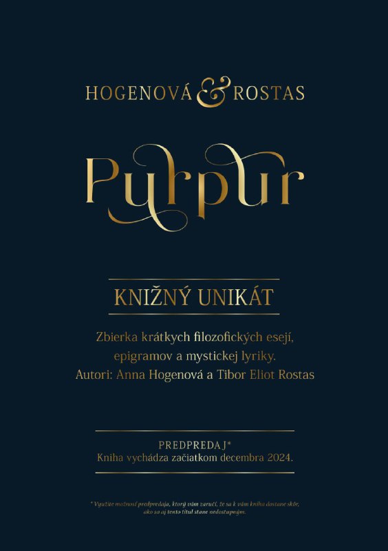 Všetky informácie o zbierke esejí, epigramov a mystickej lyriky nájdete v našom eshope, kde sme pre vás práve spustili predpredaj, ke?že sme si ve?mi dobre vedomí, že všetky naše knihy sa stávajú ve?mi rýchlo nedostupné.
