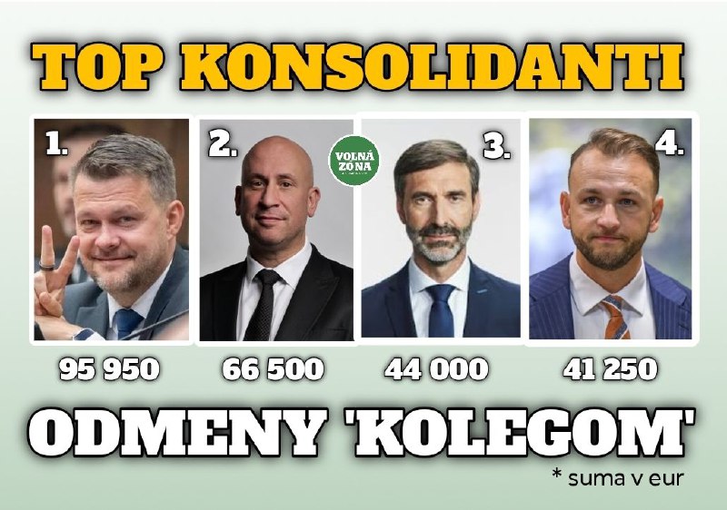 Nech sa páči, tu je TOP štvorka ministrov, ktorí v dobe konsolidácie rozdelili svojim kolegom za dobre vykonanú prácu nadštandardné odmeny. Myslím si, že tie sumy sú vzhľadom na dobu absolútne neopodstatnené a šialené.