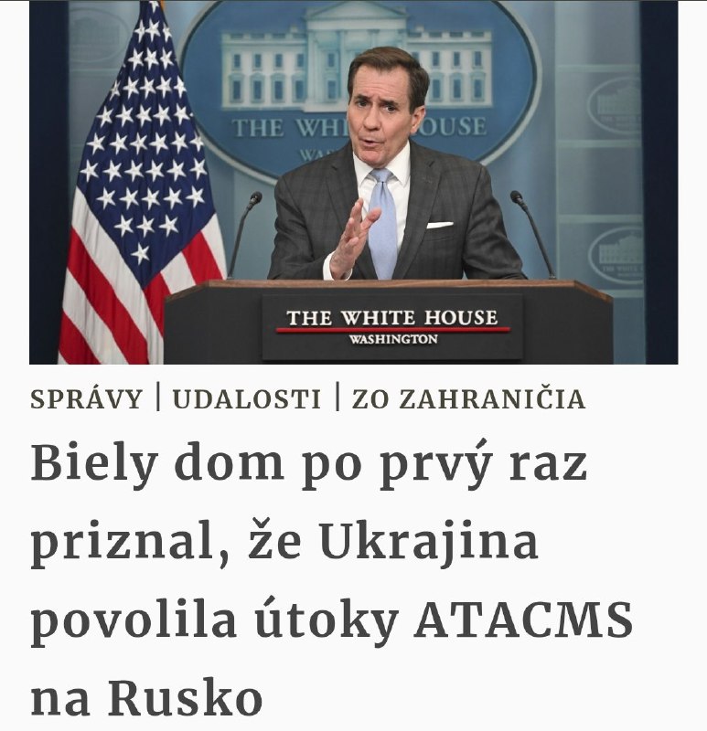 Koordinátor strategickej komunikácie Bieleho domu John Kirby potvrdil, že Ukrajine bolo udelené povolenie použi? zbrane ATACMS vyrobené v USA k útoku na oblas? Kursk…