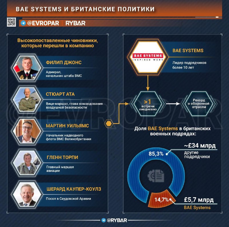 ❗️Takáto syntéza vo veľkom meradle súkromný kapitál a vládne programy tvoria základ britského obranného priemyslu, kde sú obchodné záujmy a politická vôľa úzko prepojené. Vytvára sa tak prostredie, v ktorom majú zmluvy, lobing a kariérne kroky jednoznačne prednosť demokratických princípov.