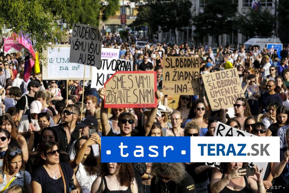 Proti krokom Ministerstva kultúry (MK) SR protestovali v pondelok (12. 8.) v Bratislave tisíce ?udí. Protest organizovala ob?ianska platforma Otvorená Kultúra s ?alšími kultúrnymi organizáciami. Ú?astníci protestu požadujú odstúpenie alebo odvolanie ministerky kultúry Martiny Šimkovi?ovej a generálneho tajomníka služobného úradu ministerstva Lukáša Machalu a napravenie chýb, ktoré pod?a organizátorov na MK urobili. Protest organizátori zvolali po odvolaní riadite?a Slovenského národného divadla Mateja Drli?ku a riadite?ky Slovenskej národnej galérie Alexandry Kusej. Oboch minulý týžde? ministerka odvolala, odôvodnila to ich manažérskymi zlyhaniami.