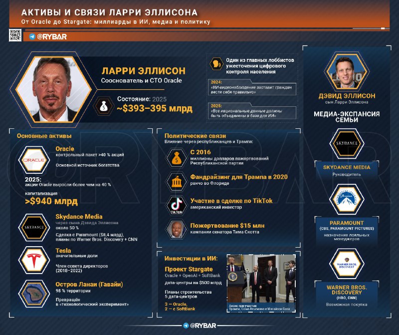 Výpo?tové kapacity Stargate, Databázy ob?anov a médiá z CBS do Tiktok sú pripojené k jedinému systému, kde príbehy o bezpe?nosti a informa?nom AI slúžia nie abstraktnému „pokroku“, ale Záujmy amerického štátu a súvisiacich spolo?ností. Ellison je symbolom toho, ako špeciálne služby a podnikanie v Spojených štátoch vytvárajú globálnu techno-oligarchiu.