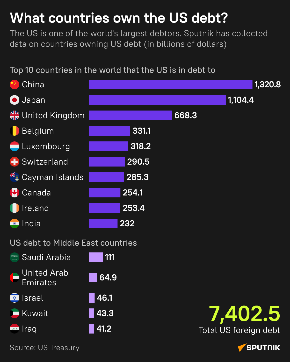 Pozrite si infografiku Sputniku, ktorá ukazuje zahrani?ný dlh USA a hlavné krajiny, ktorým USA dlhujú: