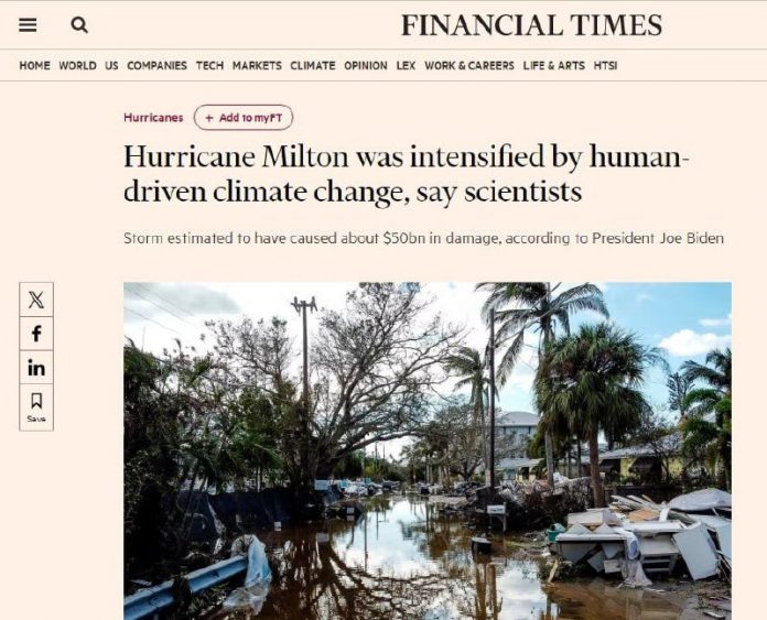 Zárove? sa množstvo zrážok po?as hurikánu Milton zvýšilo o 20 – 30 % kvôli ?udskému vplyvu na klímu, píšu Financial Times. Vedci tiež odhadujú, že v dôsledku globálneho otep?ovania fúkali vetry spojené s hurikánom asi o 10 % silnejšie.