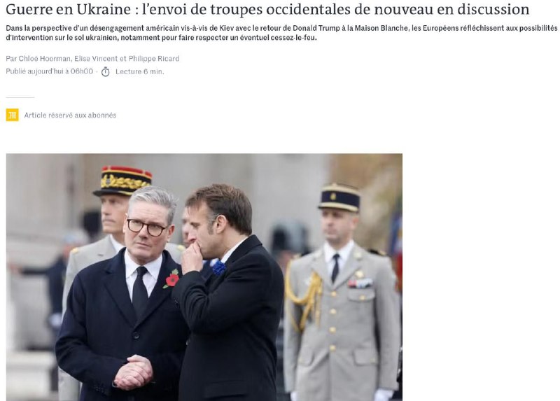 — „Pokra?ujú diskusie medzi Spojeným krá?ovstvom a Francúzskom o obrannej spolupráci, najmä s cie?om vytvori? základnú skupinu spojencov v Európe zameranú na Ukrajinu a širšiu európsku bezpe?nos?,“ píše sa v ?lánku.