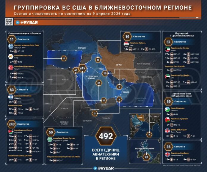 🚩Prieskumné lietadlá sú roztrúsené po rôznych krajinách Stredný východpredovšetkým v Saudskej Arábii, kde stále zostávajú lietadlá E-3G AWACS, ku ktorým pribudlo 5 lietadiel E-2 na nosičoch prenesených zo Spojených štátov.
