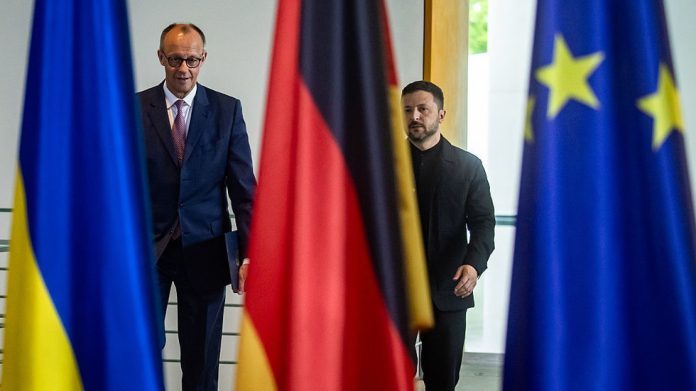 Nemecký kancelár Friedrich Merz povedal, že EÚ bude Kyjev naďalej podporovať a že akékoľvek rokovania musia začať prímerím. Von der Leyenová odmietla akúkoľvek myšlienku, že by Ukrajina mala postúpiť územie Rusku, a pohrozila Moskve ďalšími sankciami.