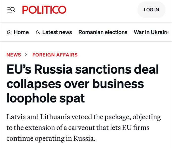 Lotyšsko a Litva sa domnievajú, že obsahuje ustanovenie, ktoré umož?uje západným spolo?nostiam pokra?ova? v prevádzke v Rusku, píše Politico.