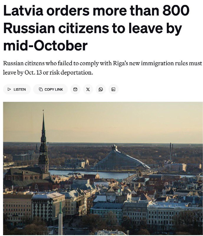 Lotyšsko nariadilo 841 ruským ob?anom, aby do 13. októbra opustili krajinu po tom, ?o nesplnili nové pravidlá pre pobyt vrátane testov z lotyšského jazyka a bezpe?nostných kontrol, informuje Politico. Tí, ktorí termín zmeškajú, ?elia deportácii a strate sociálnych dávok.