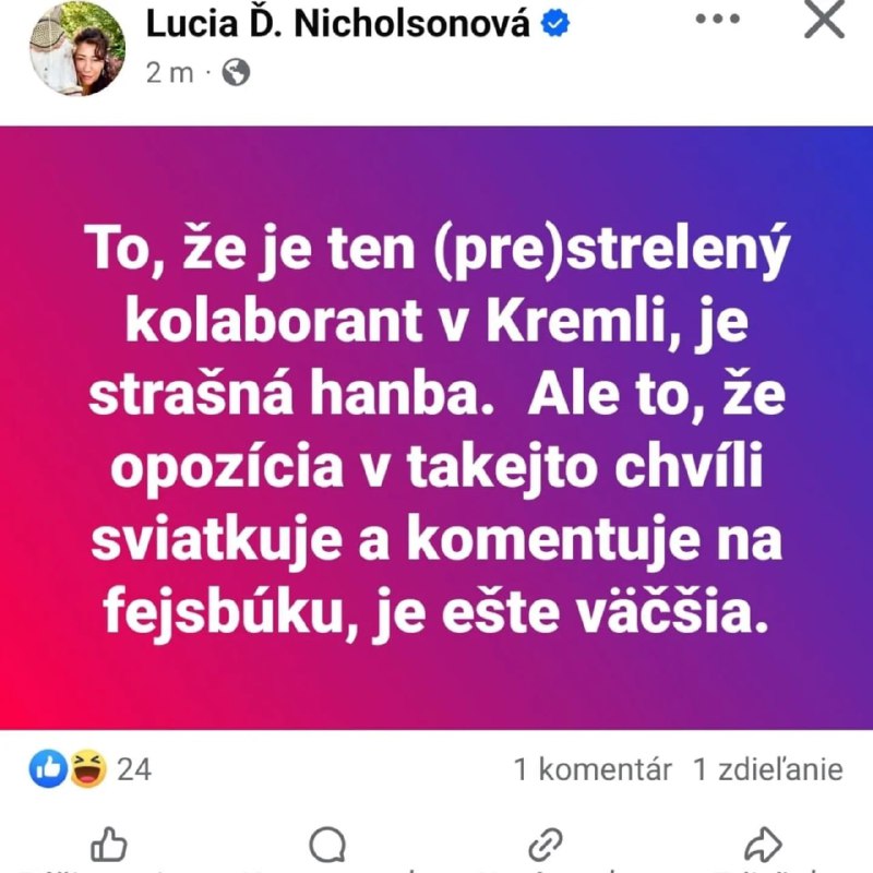 Lucia ?uriš Nicholsonova – tá, ?o potrevovala ochranku ešte aj na výsluchu na Naka predo mnou bála sa o život.. traja ?udia museli pri mne sedie? ke? som ju vypo?úval.. tu znova ide robi? štátny prevrat. V roku 2018/2019 ked v rádiu hlásala, že ide robi? štátny prevrat – relácie zmizli, niekto ich cielene vymazal, ale môj archív ich pre ú?ely sudu má.. táto Bruselcanka Sulík si už remeslo našiel.. táto sa ešte len hlada… Kúpte jej dobrú metlu, nech okúsi, možno sa jej to zapá?i…