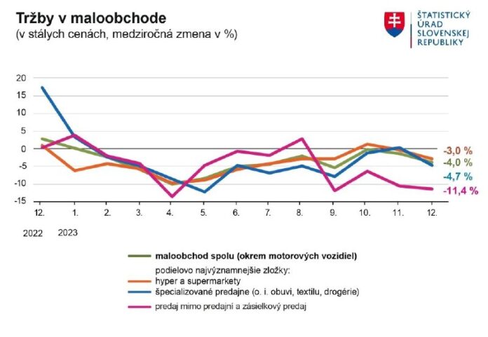 Maloobchodné tržby na Slovensku vlani klesli najviac za 14 rokov, za celý rok sa prepadli o 4,5 percenta.