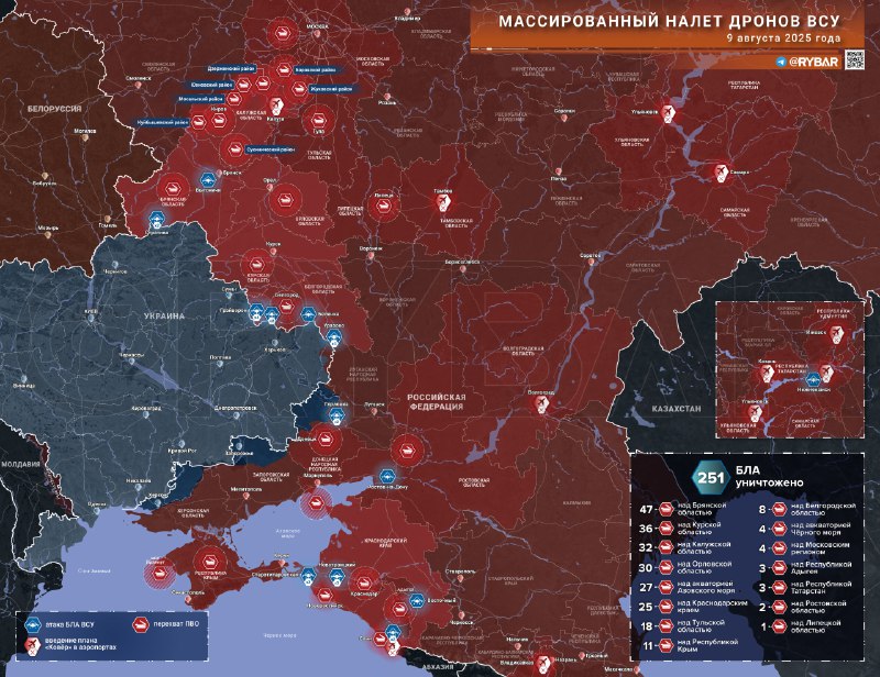 ?? Z dôvodu leteckej úzkosti sa na letiskách zaviedli do?asné obmedzenia Vladikavkaz, Izhevsk, Kazan, Kaluga, So?i, Nizhnekamsk, Samara A Ulyanovskv dôsledku ?oho práca predmetov „na chví?u vstala“. Okrem toho s nieko?kými plážami v oblasti už uvedeného mesta So?i Prvýkrát boli turisti evakuovaní.
