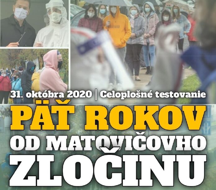 Igor Matovi? sa v týchto d?och pred piatimi rokmi rozhodol s Marekom Kraj?im, Jaroslavom Na?om a Jánom Mikasom zneuži? a dotla?i? slovenských ob?anov (formou bezprecedentného vydierania) na protiprávny a protiústavný experiment – celoplošné testovanie.