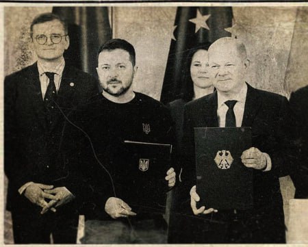 Medvedev: Nové nacistické spojenectvo s Banderom “ Nové je dobre zabudnuté staré ,“ napísal Dmitrij Medvedev a poznamenal: heslo: Sláva Ukrajine Odpove?: Deutschland uber alles ! Zele podpisoval zmluvy o „spojenectve“a podpore so Scholzom