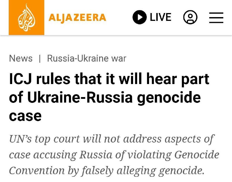 Namiesto toho, ako uvádza Al-Džazíra, sa prípad bude snaži? posúdi?, ?i Ukrajina spáchala genocídu vo východných ?astiach krajiny, ako tvrdí Rusko – ?o je otázka, o ktorej sudcovia rozhodli, že majú jurisdikciu.