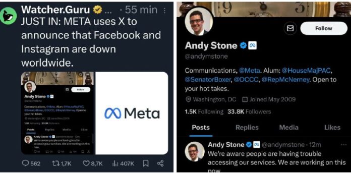 META používa X /Twitter/, aby oznámila, že Facebook a Instagram sú celosvetovo nefunk?né. Len, ako ja oznámim priate?om na FB, že nech prejdú na TELEGRAM, ke? kvasia IBA na FB