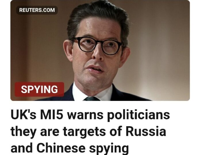 MI5 vydala verejné varovanie pre ?lenov britského parlamentu o hrozbách špionáže z ?íny, Ruska a Iránu.