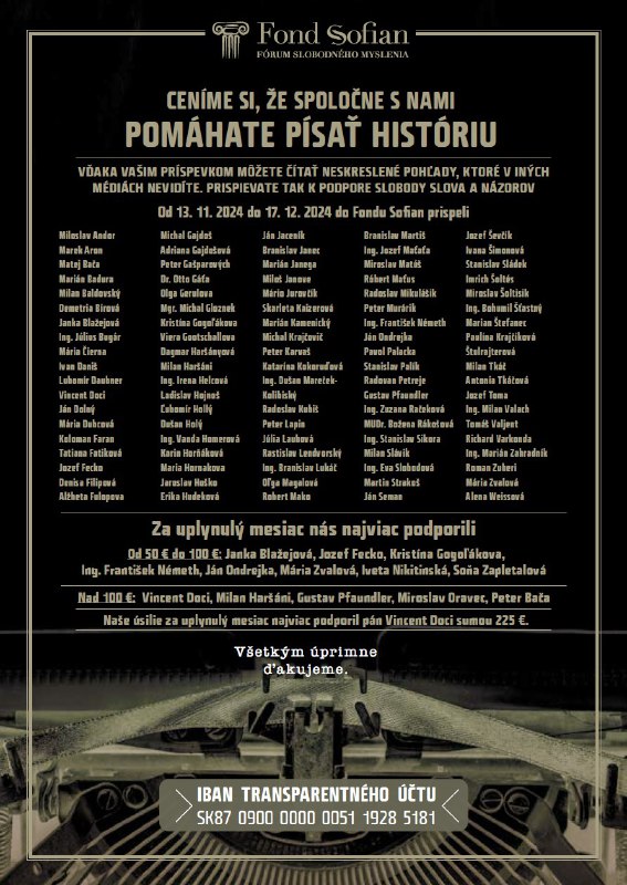 Na obrázku vám prinášame mená našich významných podporovate?ov za obdobie 13. novembra až 17. decembra 2024.