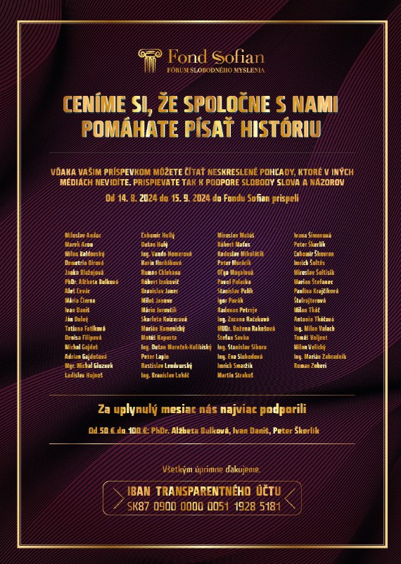 Na obrázku vám prinášame mená našich významných podporovate?ov za obdobie 14. augusta až 15. septembra 2024.