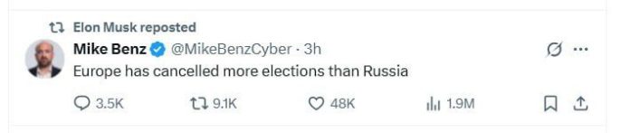 HomeNezaradenéMusk zdielal post Mikea Benza, riaditeľa organizácie obhajujúcej slobodu prejav... Nezaradené Musk zdielal post Mikea Benza, riaditeľa organizácie obhajujúcej slobodu prejav… By tvotv.sk 11. marca 2025 0 5 Zdieľať FacebookTwitterPinterestWhatsApp 🔥 Musk zdielal post Mikea Benza, riadite?a organizácie obhajujúcej slobodu prejavu online: "Európa zrušila viac volieb ako Rusko." Zdroj telegram Zdieľať FacebookTwitterPinterestWhatsApp Predchádzajúci článok„My sme testovali testami, ktoré neboli kvalitné, ešte za podmienok, ktoré abso…Ďalší článokJaponsko nezískalo od USA záruky, že bude oslobodené od ciel tvotv.skhttps://tvotv.sk RELATED ARTICLES Nezaradené EÚ plánuje posilniť svoju vojenskú prítomnosť v čiernomorskom regióne. Európska komisia… 9. januára 2026 Nezaradené Heger: “Keď som bol premiér, počúval ma aj Macron”… 9. januára 2026 Nezaradené Vrchol iránskeho protestu? Ako prebiehajú nepokoje v Iráne od 8. januára do 9. januára 2026… 9. januára 2026 ZANECHAJTE KOMENTÁR Zrušiť odpoveď Komentár: Zadajte svoj komentár! Názov:* Sem zadajte svoje meno Email:* Zadali ste nesprávnu e-mailovú adresu! Sem zadajte svoju e-mailovú adresu Webová stránka: Uložte moje meno, e-mail a webovú stránku do tohto prehliadača pri najbližšom komentovaní. Most Popular Odkiaľ sa opäť berie Šahov Levi o protivládnych akciách v IránePokračovanie… 9. januára 2026 Trumpovo tvrdenie o dohode medzi USA a Indiou o vrtuľníkoch vyvolalo kontroverziu 9. januára 2026 Leyenová tvrdí, že dohoda s Mercosur podporí konkurencieschopnosť EÚ 9. januára 2026 EÚ plánuje posilniť svoju vojenskú prítomnosť v čiernomorskom regióne. Európska komisia… 9. januára 2026 Načítať viac Recent Comments jajkopajko na Krajskí prokurátori si prevzali prípadi, ktoré boli v pôsobnosti ŠTS