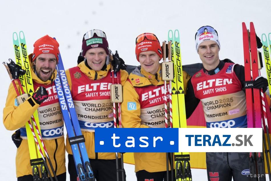 Nemci sa vrátili na najvyšší stupe? prvýkrát od roku 2017, ke? triumfovali vo fínskom Lahti. ?alšie tri šampionáty patrili Nórom. Sú?až sa pôvodne mala kona? vo štvrtok, no pre silný vietor ju preložili o de? neskôr. V piatok už boli poveternostné podmienky ideálne, situáciu komplikovalo iba teplé po?asie a roztápajúci sa sneh.