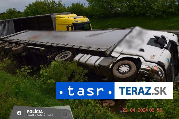Bratislava 22. apríla (TASR) – Na dia?nici D2 v smere z ?eskej republiky do Bratislavy došlo k nehode, pri ktorej skon?ilo nákladné vozidlo mimo vozovky. Prejazdný je len jeden jazdný pruh. Bratislavská krajská polícia o tom informuje na sociálnej sieti.